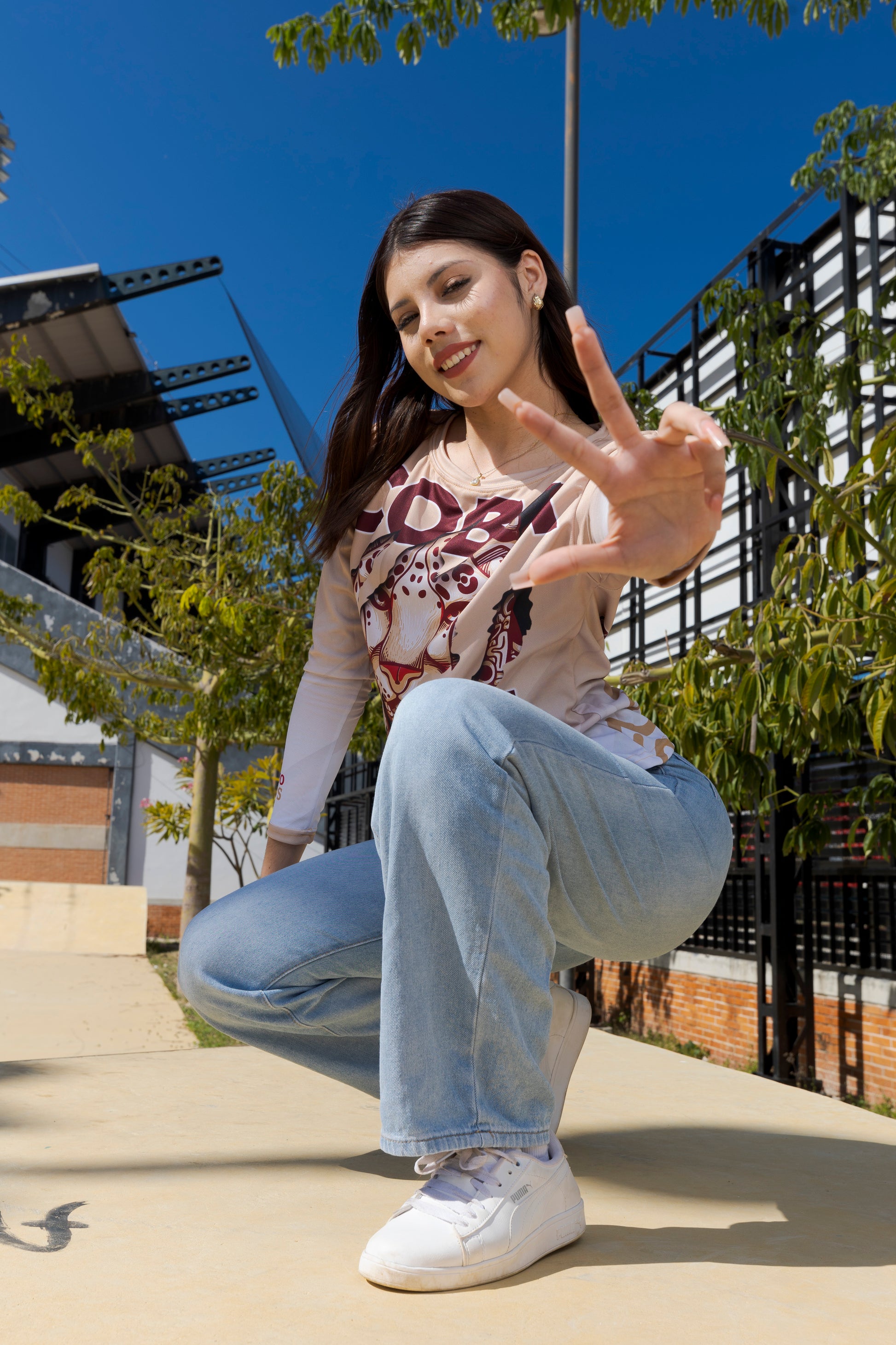 Playera Jersey Beige Manga Larga Deportiva Unisex. Precio más IVA.